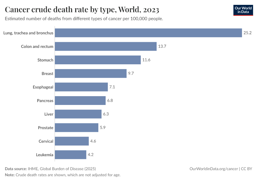 The chart below shows the cancers with the highest death rates globally.