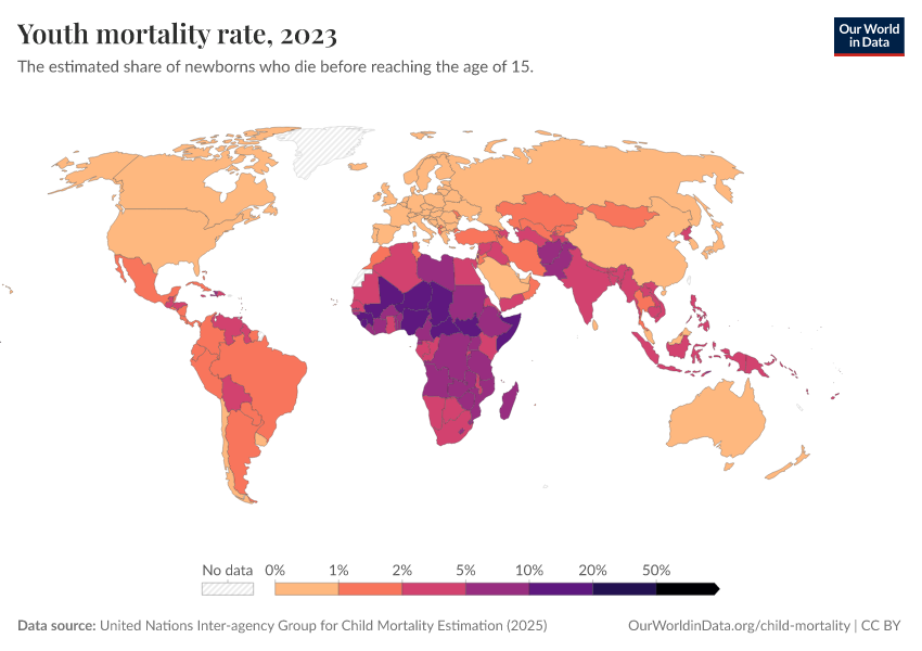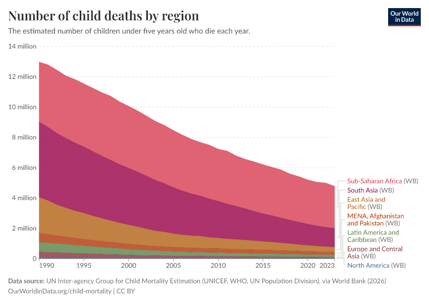 Saloni Dattani, Fiona Spooner, Hannah Ritchie, and Max Roser (2023) - “Child and Infant Mortality” Published online at OurWorldinData.org. Retrieved from: 'https://ourworldindata.org/child-mortality' [Online Resource]BibTeX citation