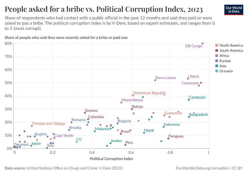 Bastian Herre, Veronika Samborska, and Esteban Ortiz-Ospina (2016) - “Corruption” Published online at OurWorldinData.org. Retrieved from: 'https://ourworldindata.org/corruption' [Online Resource]BibTeX citation