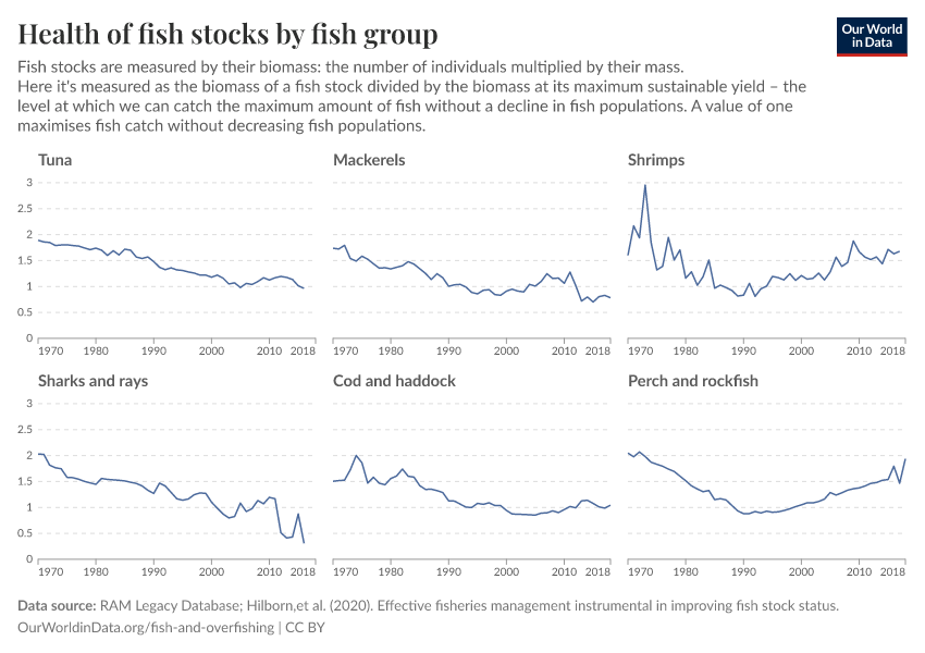 Hannah Ritchie and Max Roser (2021) - “Fish and Overfishing” Published online at OurWorldinData.org. Retrieved from: 'https://ourworldindata.org/fish-and-overfishing' [Online Resource]BibTeX citation
