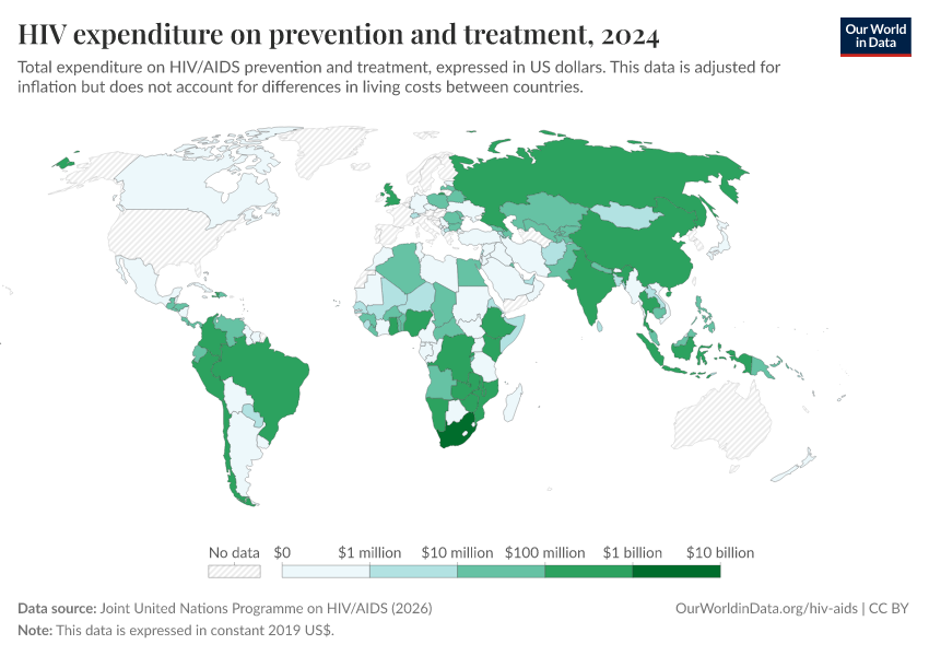 Max Roser and Hannah Ritchie (2023) - “HIV / AIDS” Published online at OurWorldinData.org. Retrieved from: 'https://ourworldindata.org/hiv-aids' [Online Resource]BibTeX citation