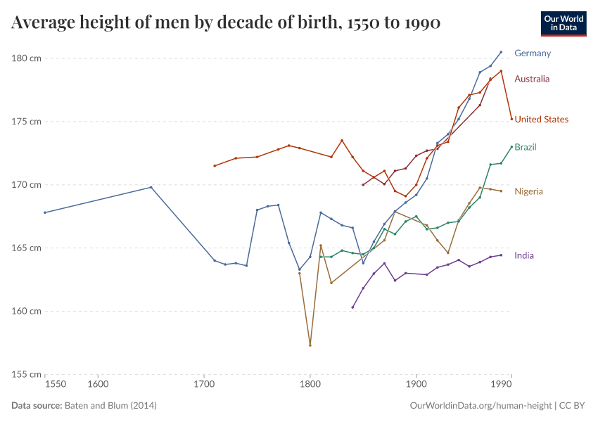 Max Roser, Cameron Appel, and Hannah Ritchie (2021) - “Human Height” Published online at OurWorldinData.org. Retrieved from: 'https://ourworldindata.org/human-height' [Online Resource]BibTeX citation