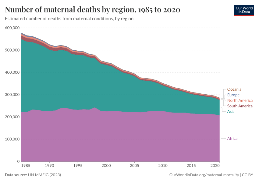 Max Roser and Hannah Ritchie (2013) - “Maternal Mortality” Published online at OurWorldinData.org. Retrieved from: 'https://ourworldindata.org/maternal-mortality' [Online Resource]BibTeX citation