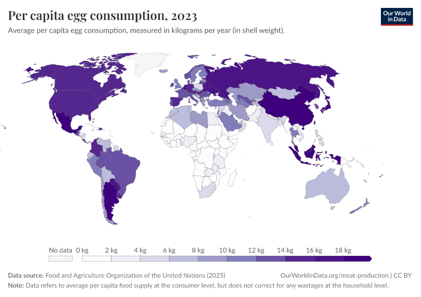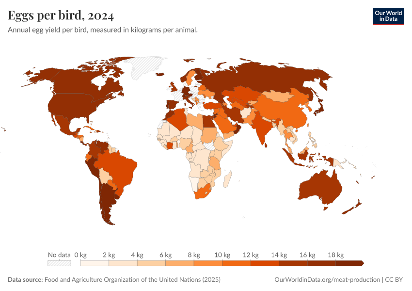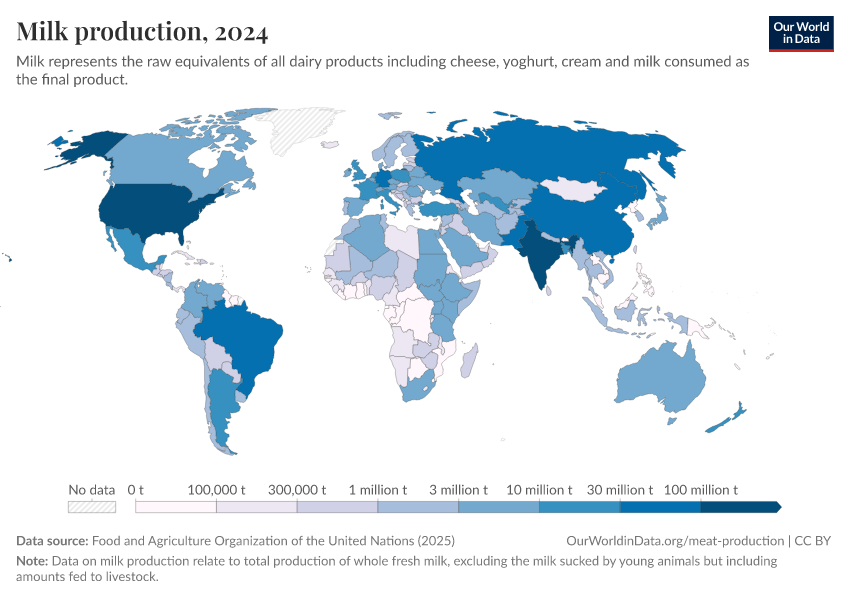 Hannah Ritchie, Pablo Rosado, and Max Roser (2019) - “Meat and Dairy Production” Published online at OurWorldinData.org. Retrieved from: 'https://ourworldindata.org/meat-production' [Online Resource]