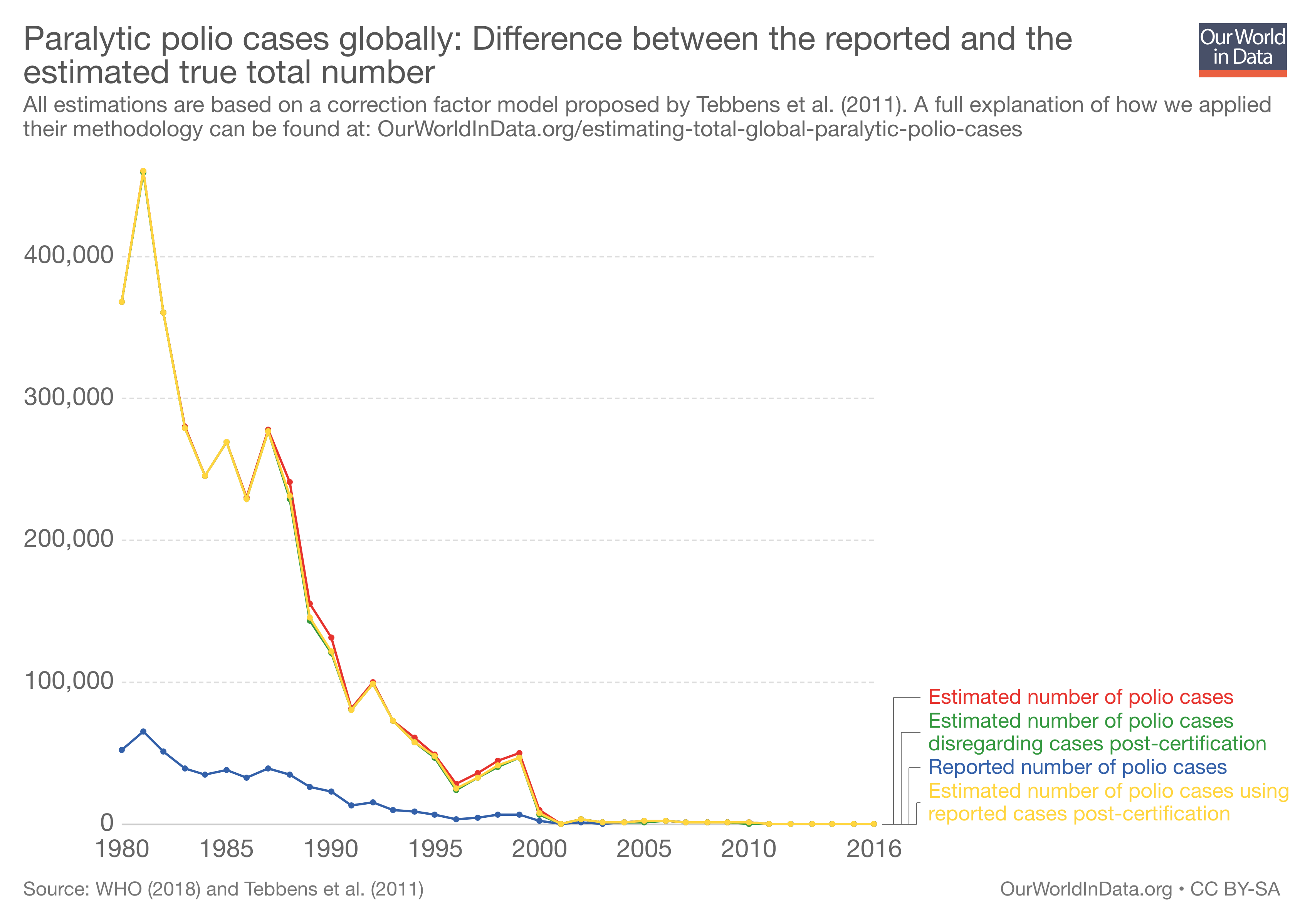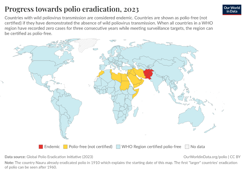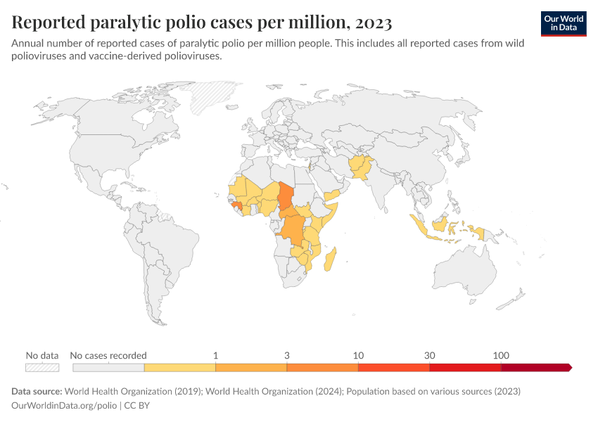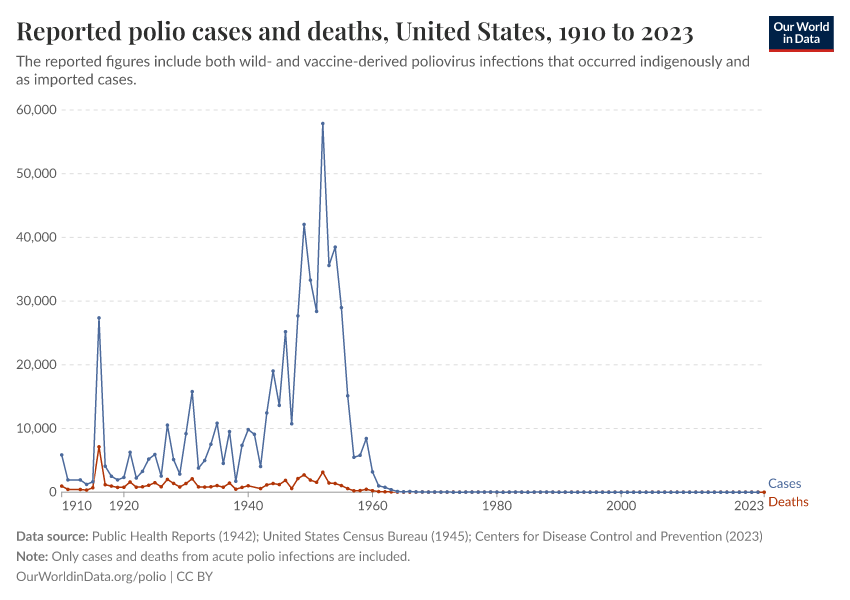 Saloni Dattani, Fiona Spooner, Sophie Ochmann, and Max Roser (2022) - “Polio” Published online at OurWorldinData.org. Retrieved from: 'https://ourworldindata.org/polio' [Online Resource]BibTeX citation