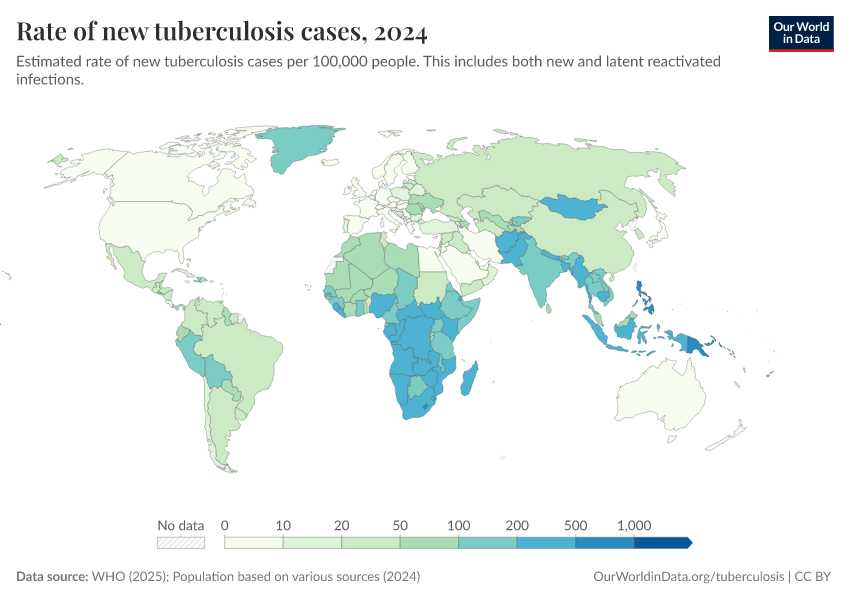 Saloni Dattani, Fiona Spooner, Hannah Ritchie, and Max Roser (2023) - “Tuberculosis” Published online at OurWorldinData.org. Retrieved from: 'https://ourworldindata.org/tuberculosis' [Online Resource]BibTeX citation